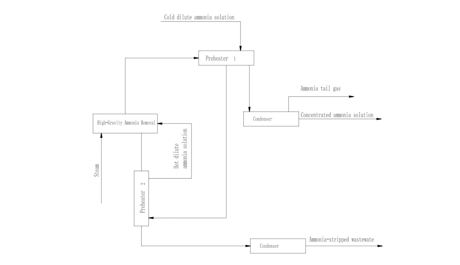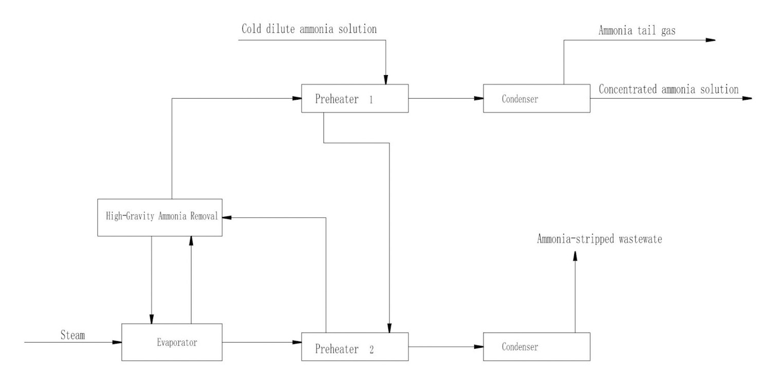 High-gravity ammonia removal operates by generating intense centrifugal forces through high-speed rotation. This process disperses liquid into ultra-thin films or micro-droplets, significantly enhancing gas-liquid contact area and mass transfer rates. It efficiently treats dilute ammonia solutions (1-5% concentration) or ammonia-containing wastewater, reducing residual ammonia content to ≤0.05% while simultaneously recovering concentrated ammonia water (15-20%) and gaseous ammonia as valuable byproducts. The technology achieves efficient ammonia separation through synergistic mechanisms: heating promotes ammonia desorption, vacuum operation alters the relative volatility of ammonia/water, and countercurrent gas flow strips ammonia within the high-gravity field. These integrated approaches enable highly effective ammonia removal from dilute solutions.
